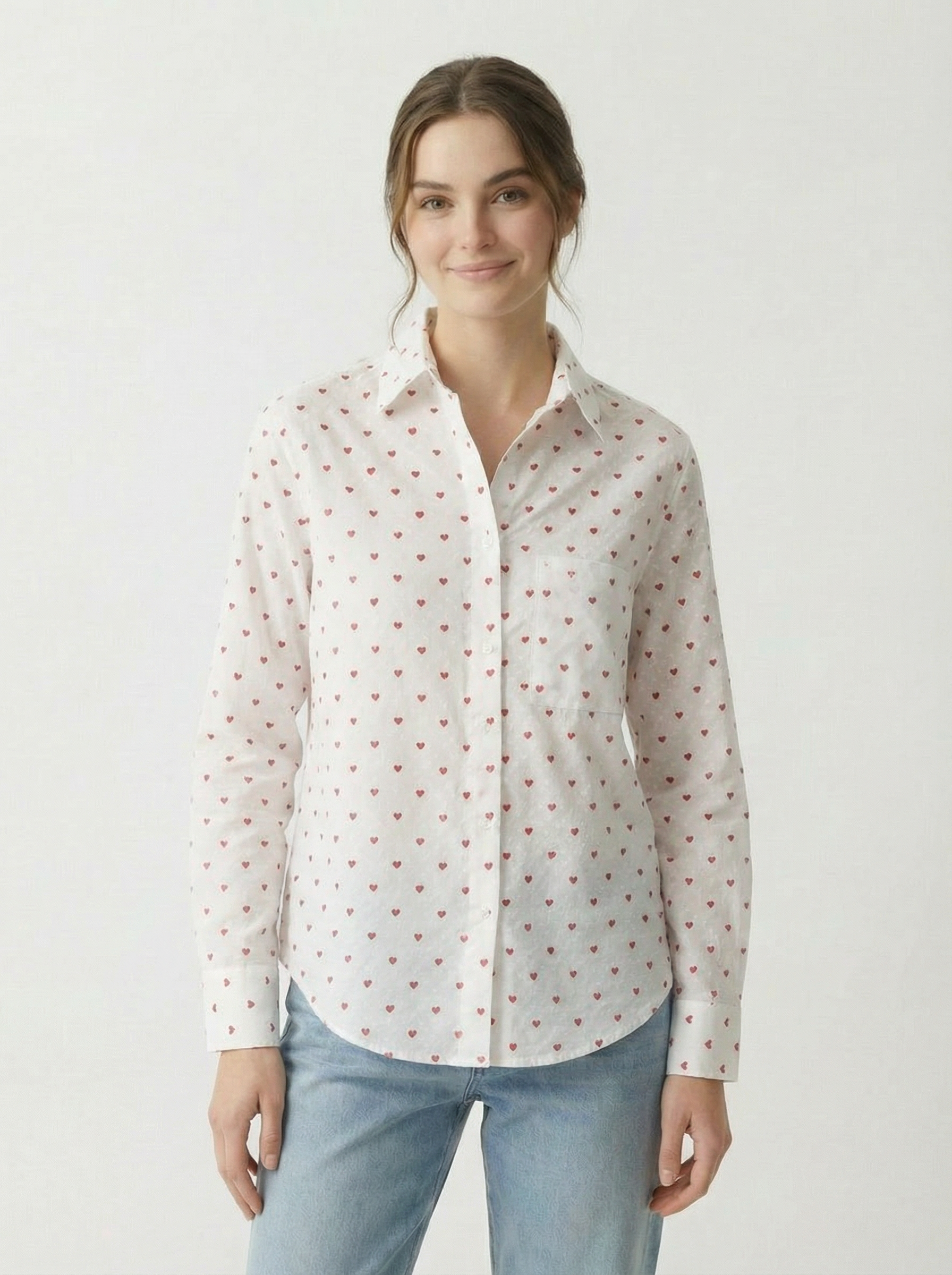 Be the first to review “White Dobby Little Heart Print Shirt”